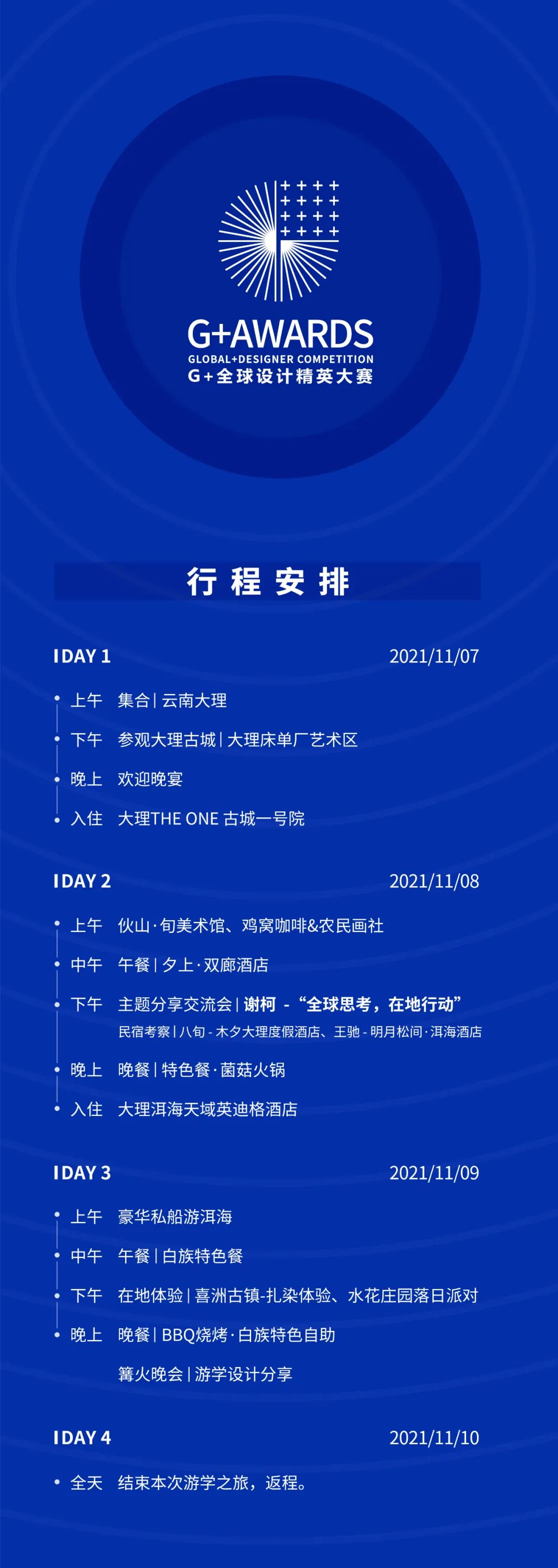 同时,本次行程的主人公们“G+AWARDS全球设计精英大赛-中国TOP30”的设计精英,将会围坐在温暖的篝火旁,进行设计交流,畅谈彼此或长或短,充满酸甜苦辣的设计之路,相信这也将会是除了嘉宾分享行程外,最值得期待,最有收获的夜晚。