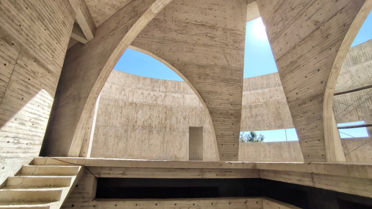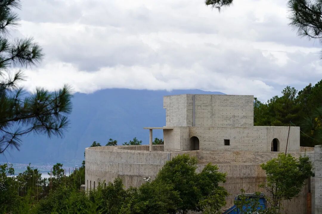 伙山美术馆是八旬最新的项目,位于大理双廊镇伙山村,水泥混凝土结构的美术馆藏在山顶的树林中,说是美术馆,倒更像一座心灵迷宫。要进入这个巨大的迷宫空间,是从侧方的一个窄门进入,狭窄、高耸、锐利的长长走道,打破了以往对美术馆的认知,这里是脱离现实进入内心宇宙的入口。