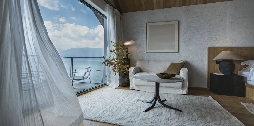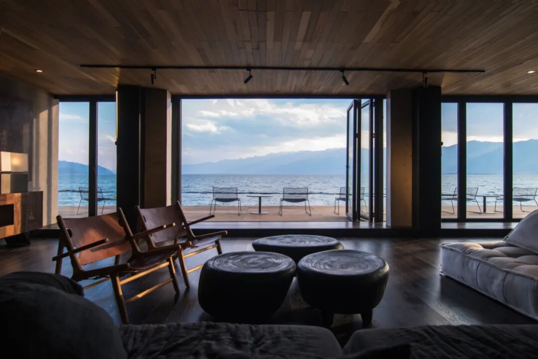 建筑外墙就地取材,选用当地毛石以现代工艺加工成型,使建筑完全融于自然。设计师以“院落”为理念,打造此院。将理念运用至每一个角落包括走廊、客房、餐厅、SPA及整体项目规划。设计师将餐厅,酒店接待及院内景观,通过“洱海之水”联系在一起。