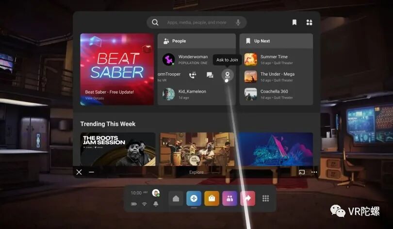 为了给不断发展的元宇宙铺平道路,Facebook 计划开放其邀请系统,玩家可以在不离开游戏的情况下邀请朋友加入。邀请形式可以是在 VR 中(也有可能是真实世界中)发送信息。Quest 交互界面会增加“Ask to Join”(询问是否可以加入)板块,以便玩家在加入游戏前向朋友进行询问。