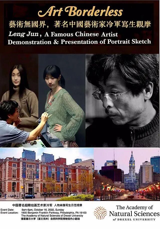 2022年10月16日,罗丹国际艺术家基金会联合多所美国名校成功举办中国著名画家冷军先生的人物写生观摩。这是德雷塞尔大学富兰克林自然科学院博物馆(1812年创建)继中国兵马俑展多年之后又一次美中大型国际学术交流和国际艺术公益活动。中国超限写实著名艺术家冷军在美国名校世界顶级博物馆剧场以其神妙之笔,神速之功,6小时的众目之下完成现场写生观摩神笔之作。再次惊动美国艺术圈,折服美国学生,艺术家和广大的艺术爱好者们。在美国的大学校园和艺术界掀起中国风。美国主流大学德雷塞尔大学在其官网上如此标注艺术家冷军此次活动的重大意义:冷军大师让艺术超越国界(Art Borderless: Live Portrait Painting by Leng Jun),此项国际公益艺术学术交流活动将意义深远。