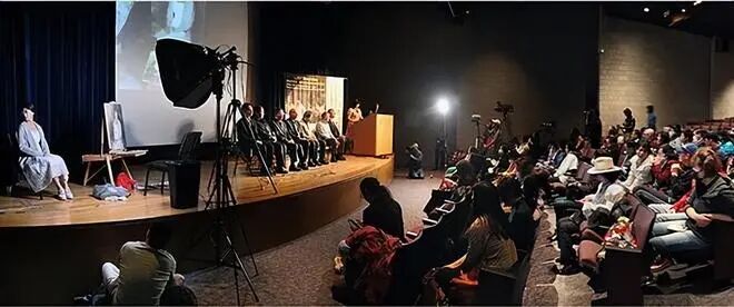 本次艺术写生观摩活动整个绘画过程全程对公众免费开放,时间从上午9点开始至下午6点结束,持续9个小时,观众络绎不绝,除了午休一个小时,中间还穿插了冷军先生与观众艺术问题对答,现场学术氛围热烈活跃。此活动信息早在一个月前,便通过网络和社交媒体广而告之。听闻大师威名,有些艺术爱好者还有一些冷粉们特意从波士顿、纽约、华盛顿、俄亥俄州和马里兰等地搭乘飞机,火车或者开车前来,目的就是目睹冷军大师的妙笔神韵,有机会现场向大师学习。费城各大艺术院校的学生同学和美术爱好者们也纷纷前来现场参与观摩活动,很多美国的艺术家朋友们也前来观摩交流。冷军先生的魅力使得容纳上百人的剧场座无虚席,甚至有些学生为了能目睹冷军大师运笔绘画的细节,坐在前排的地上。