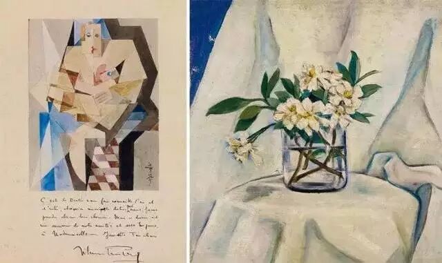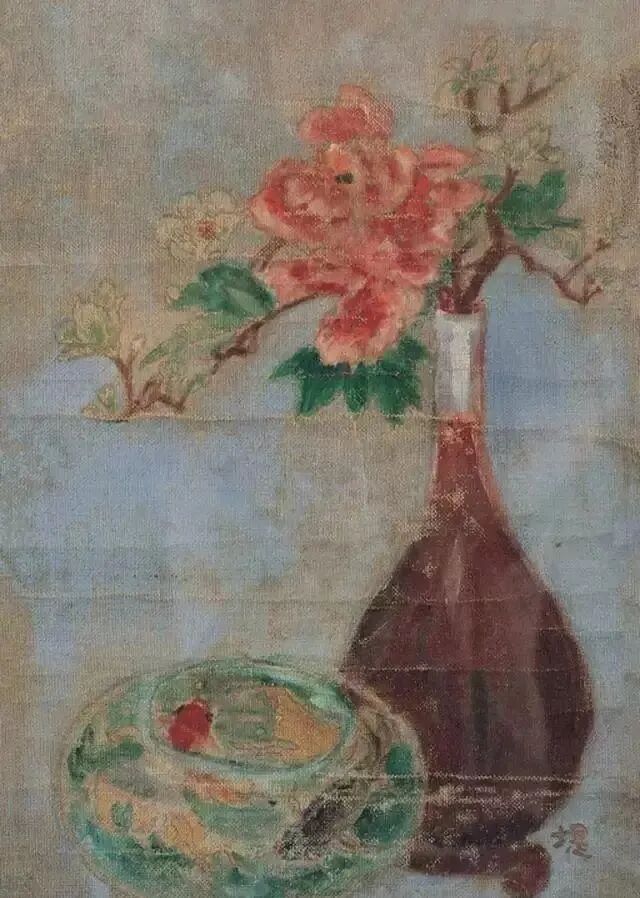 左图为庞薰琹《母与子》,右为丘堤《花卉》,均创作于上世纪20年代