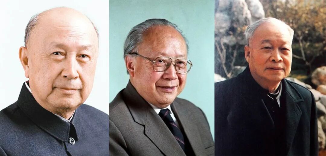 △钱学森(左)、钱伟长(中)、钱三强(右)。