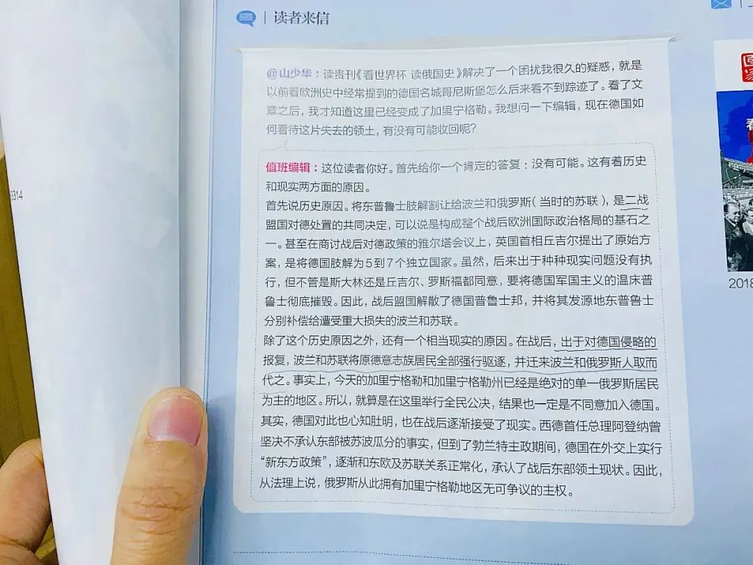 比如,有读者写信给杂志社,提问:德国在二战中割让给波兰和俄国(当时是苏联)的领土,有没有可能收回?