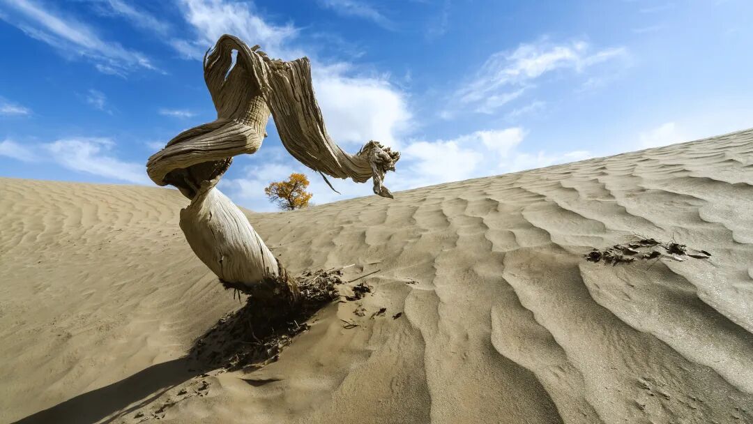 这里曾是一片汪洋大海,随着板块运动,海水退去,陆地初现。青藏高原的崛起阻挡了水汽,让本就远离大陆的塔里木盆地,更是鲜有降雨。