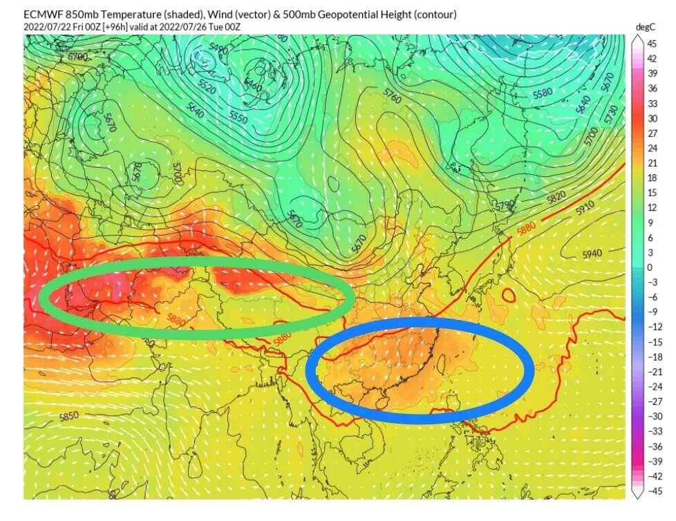 绿圈就是大陆暖高压的活动示意。图\国家气候中心