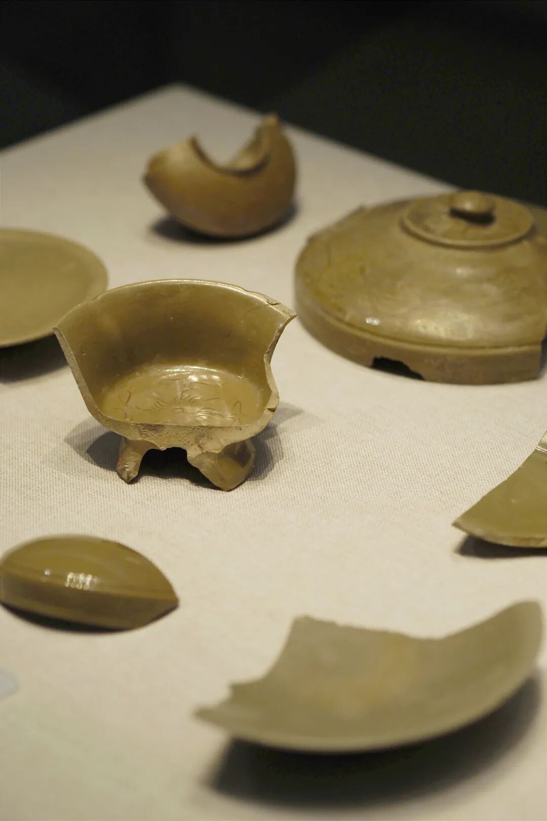 可仔细观看时,你会感到奇怪,它们的釉色并不像其他秘色瓷一样莹润青翠,而呈现出厚薄不均的干涩感,这是为什么?