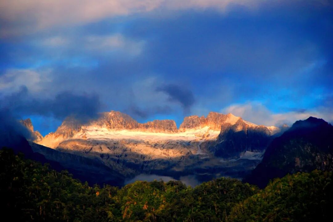 历经漫长地质年代的精心雕琢,高黎贡山地区群山绵延,地势北高南低,地面剧烈起伏,北段山峰平均海拔多在4500米以上,而南段山峰在3500米左右。境内最高峰嘎哇嘎普海拔高达5128米,而它的名字在独龙语中意指“高大的雪山”,想来真是朴素又贴切。