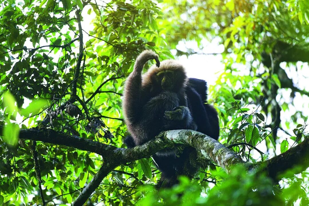 ▲ 高黎贡白眉长臂猿,也叫天行长臂猿,仅在高黎贡山南段少量分布,是中国科学家命名的唯一一种类人猿。图/董磊/高黎贡山国家级自然保护区怒江管护局
