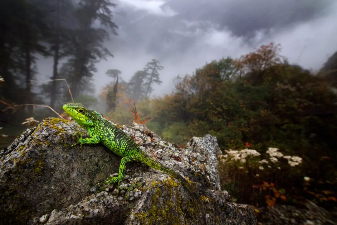 ▲ 高黎贡山上生活着多种珍稀两栖爬行动物,图为体色绚丽的独龙江拟树蜥。图/范毅/高黎贡山国家级自然保护区怒江管护局