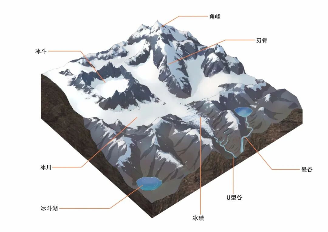 ▲ 冰川作用后的地貌示意图。图/杜利速
