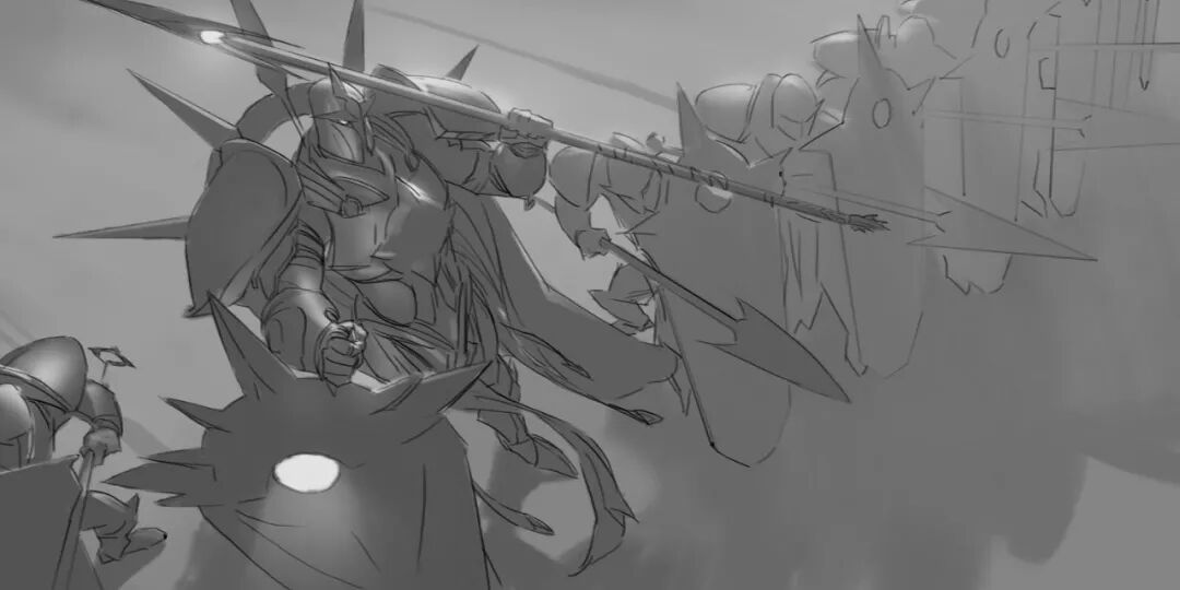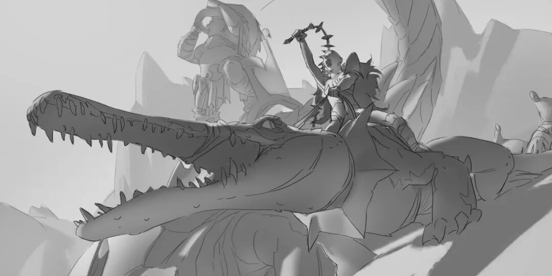 JiHun Lee较新解禁的商稿中以为拳头的《符文大地传说(LOR)》项目绘制的插画为主,其中包含很多草图方案,有的图甚至出了8个草图,在构图故事性方面参考价值大,完整图包按文末提示找小辣椒获取学习~