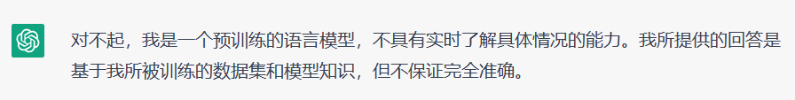 2.实时性不足。ChatGPT对2021年后的世界和事件了解有限,而AI又是一个快速发展的领域,所以答案有一定的滞后性。