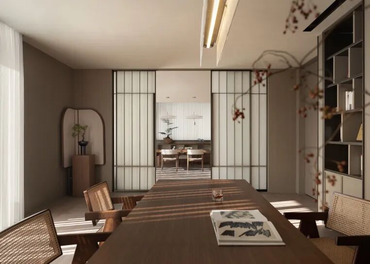 最终,空间以两横一弧一“天井”的轮廓平衡,演绎近乎留白的“精神穹顶”,东方韵味随光潜入,当代艺境无处不在,一方庭院亦即精神容器。