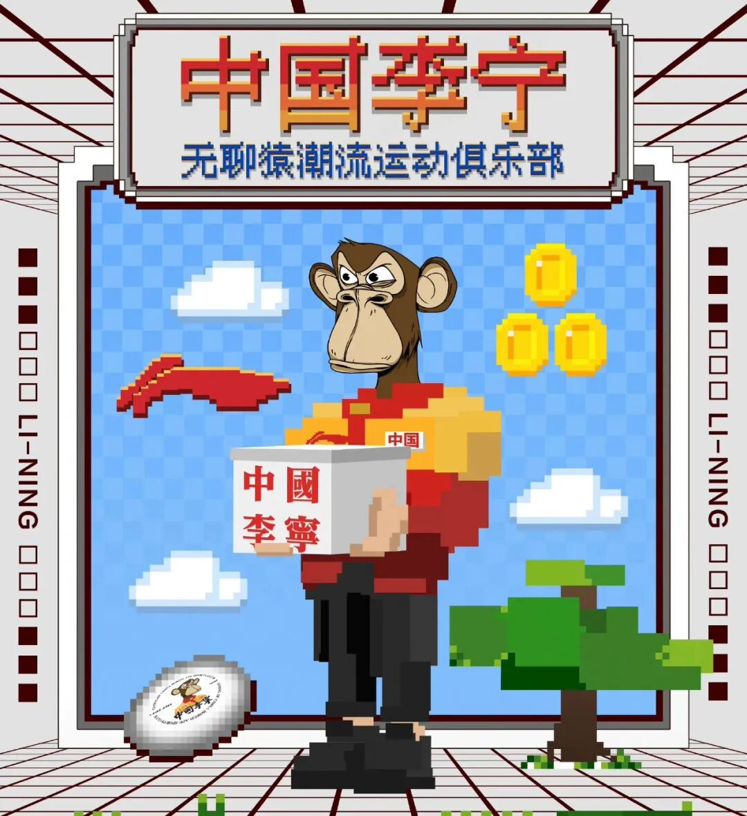 2022年4月下旬,李宁宣布与无聊猿游艇俱乐部(Bored Ape Yacht Club)编号#4102的非同质化代币(NFT)达成合作,将打造“无聊猿潮流运动俱乐部”系列产品。