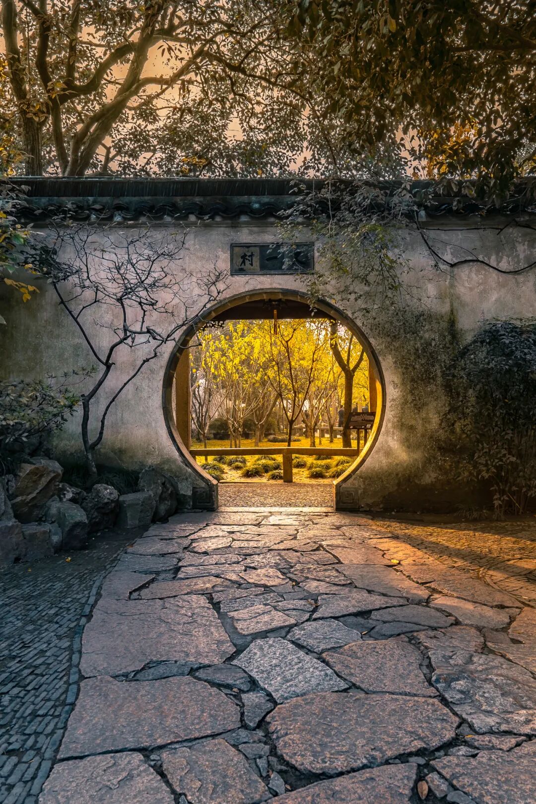 · 江苏苏州拙政园“梧竹幽居”亭月门