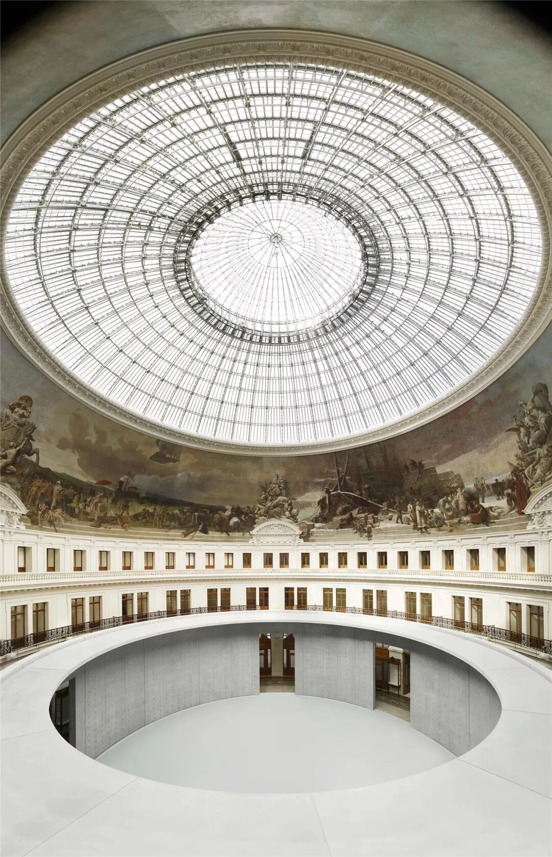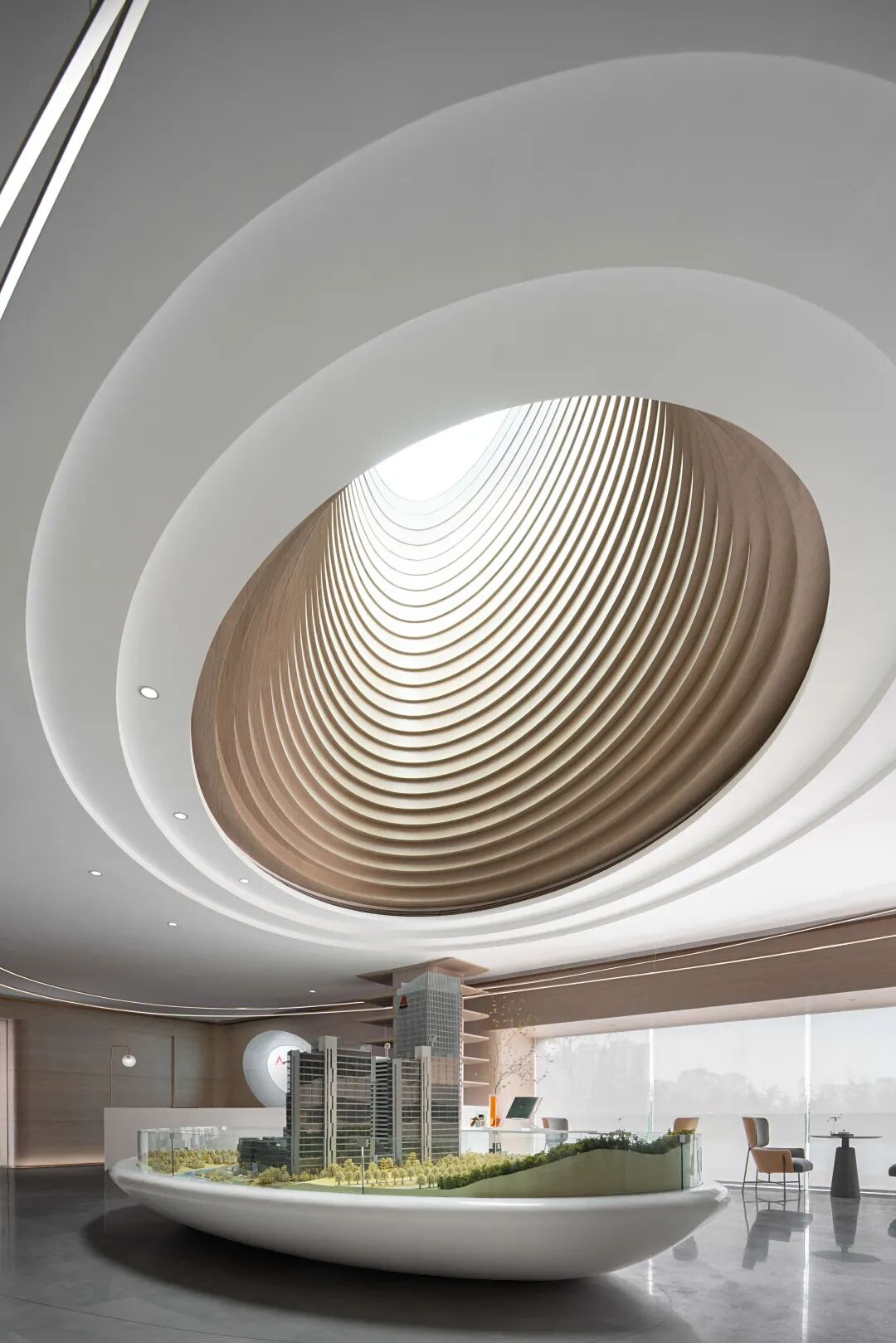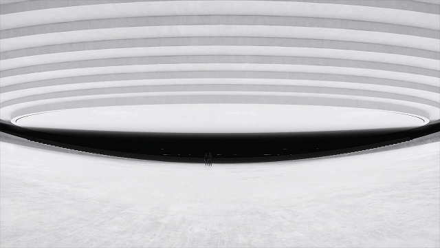 倒转穹顶采用了一个巨大的倒置玻璃张拉结构,它位于天文馆中庭顶部。游客置身其中,可以静观天空,思考宇宙。作为参观之旅的高潮部分,倒转穹顶能够“屏蔽”城市的喧嚣和周围的一切,将游客的注意力集中在包罗万象的天空上,享受与宇宙的真实邂逅,并为天文馆体验之旅画上圆满的句号。此外,倒转穹顶的下方还设有720°螺旋坡道,从主建筑自然地延伸出去,象征着星系的旋臂,并将游客的目光逐渐吸引至建筑的顶端。