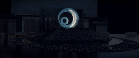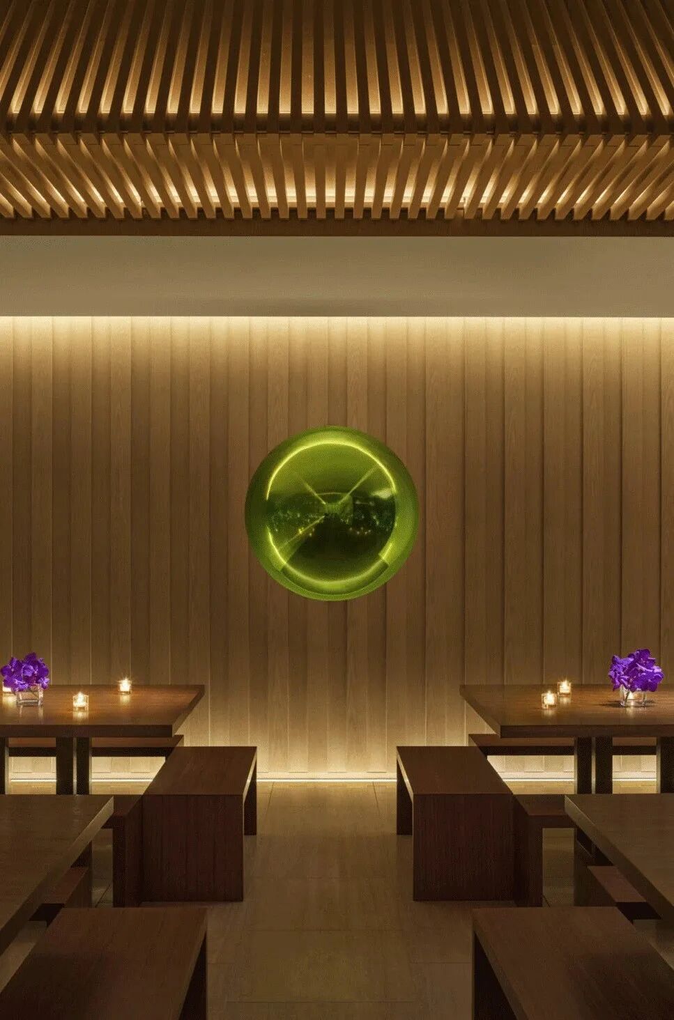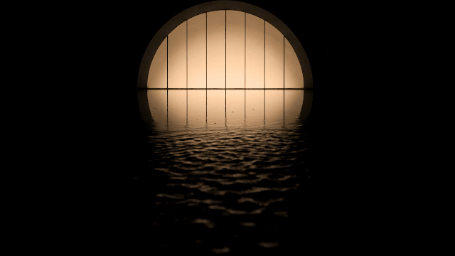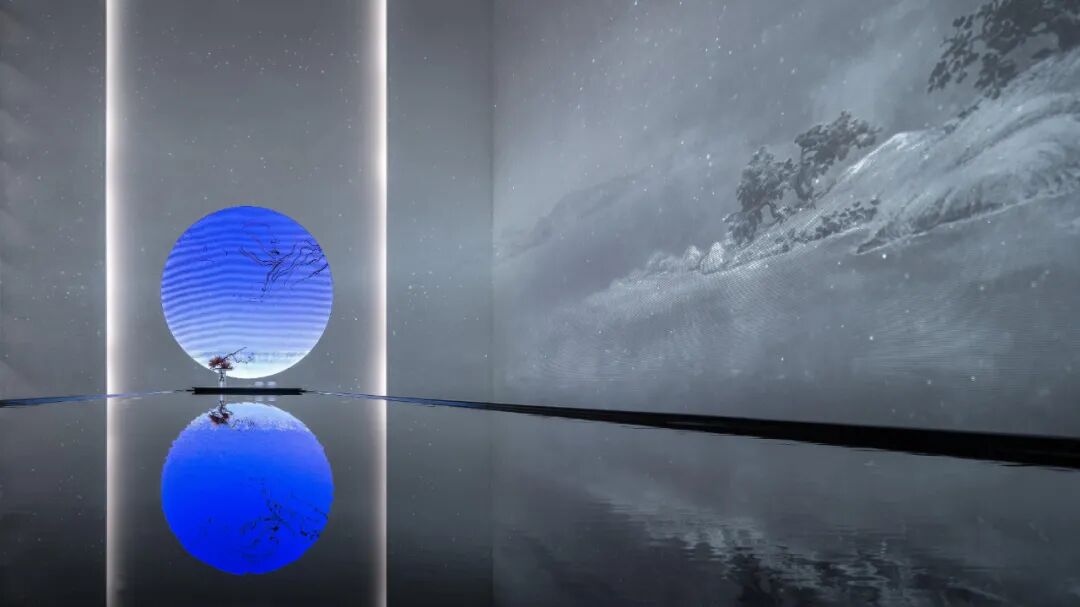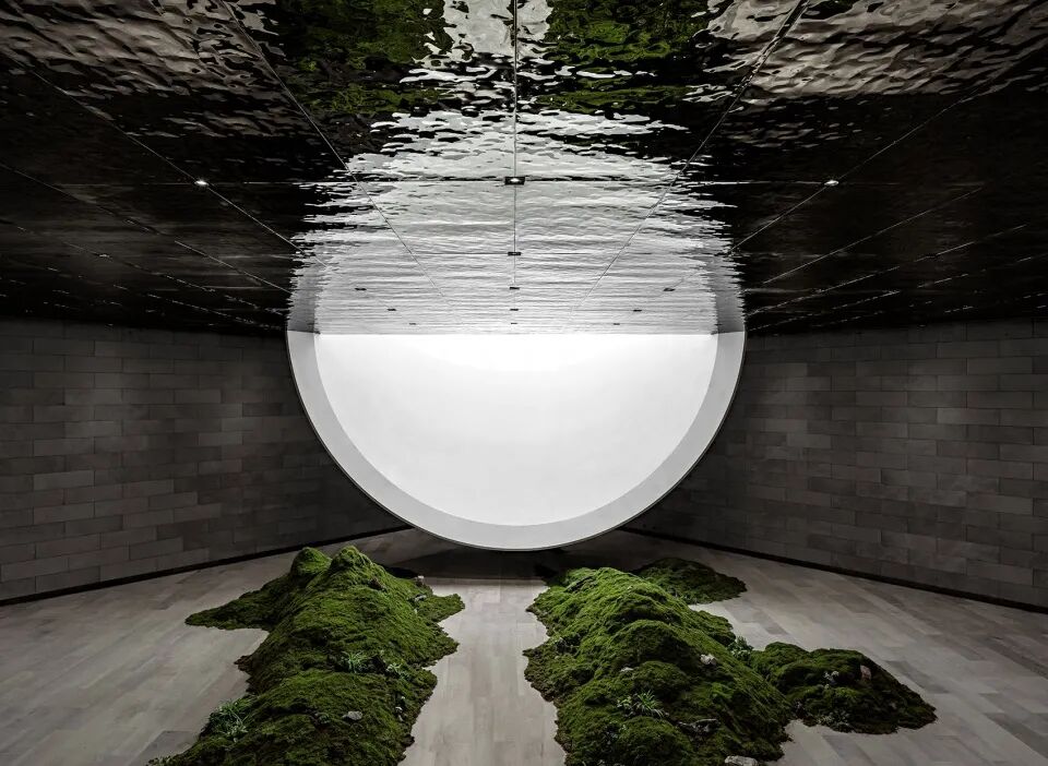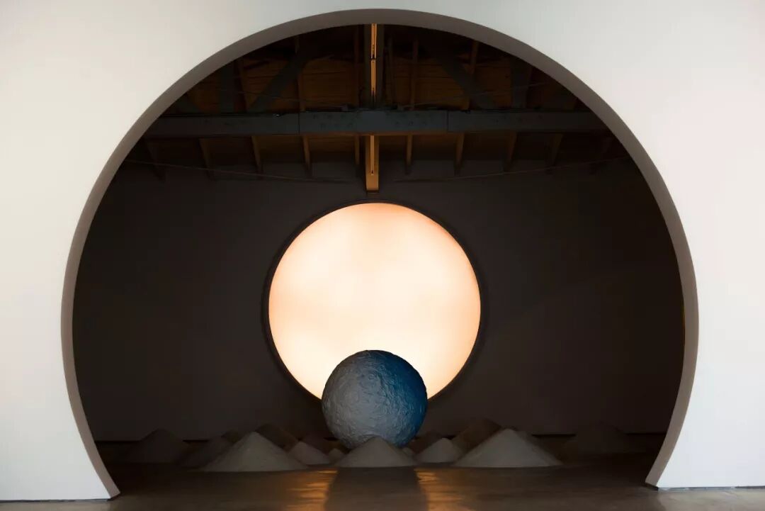该作品融合了雕塑、灯光和音频元素,创造出一个沉浸式体验,是艺术家对于传统日本枯山水园林景观的重新诠释。在这个沙石园林里,有一棵石化树和一个立着的石灯笼,沐浴在一片明亮的粉色世界里,整个作品里仅有的光源就是一个直径9英尺的球体,看上去就像是月亮一样。