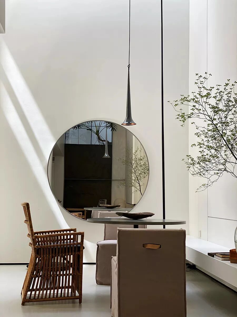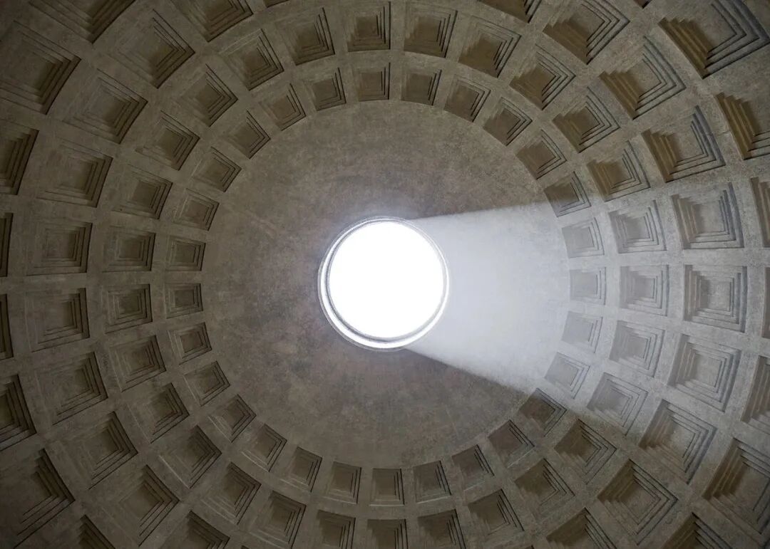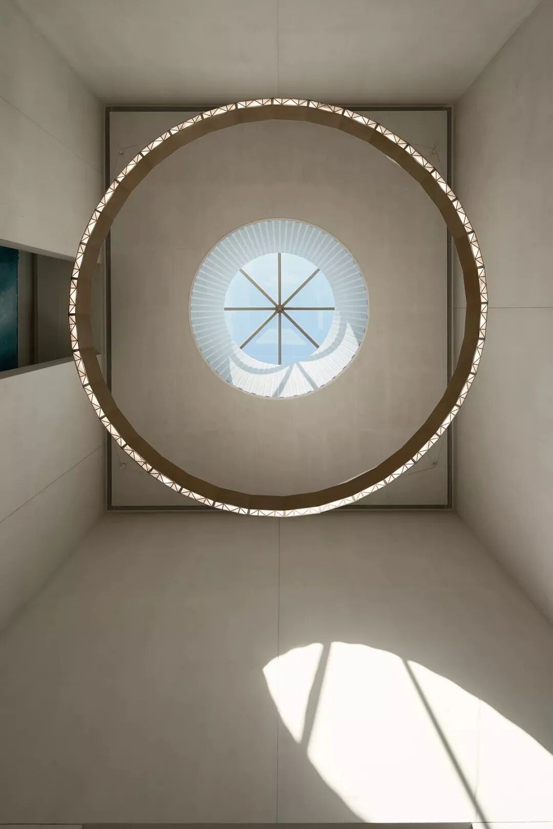 ▲圆洞天窗犹如日晷,时刻捕捉光影,记录时间