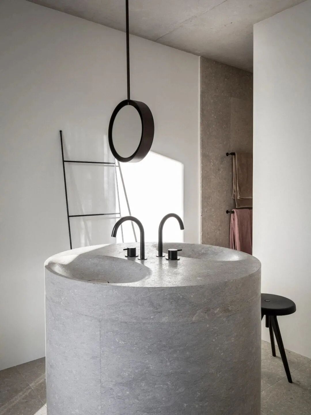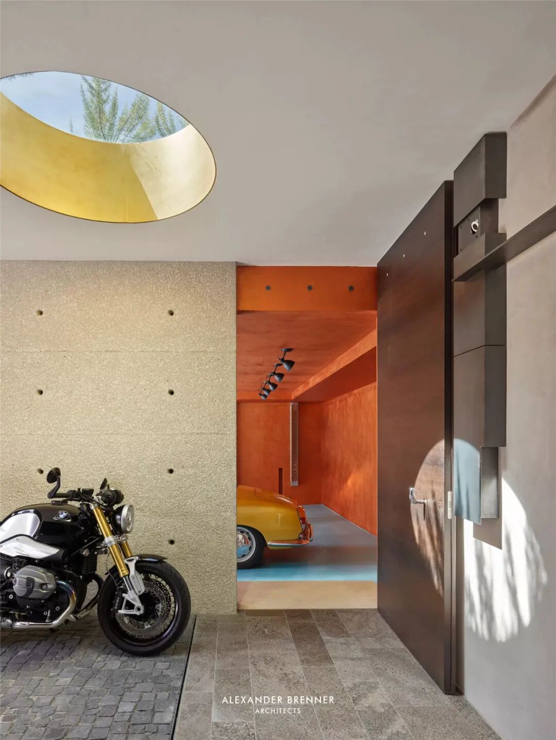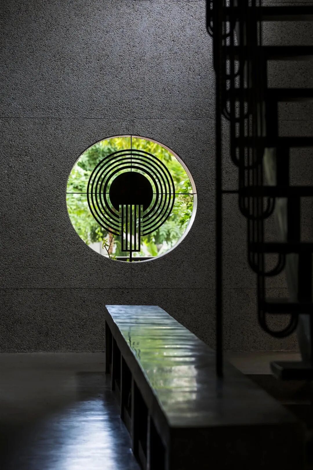 ▲圆洞天窗犹如日晷,时刻捕捉光影,记录时间