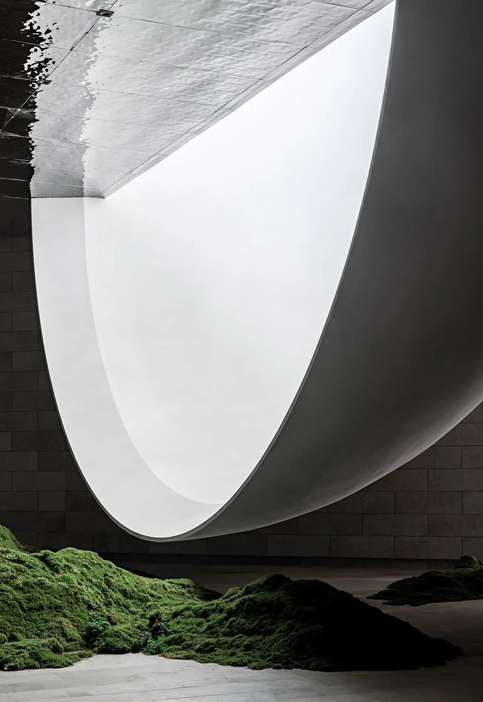 这一系列剖面的变化,也使得月空礼堂从外部的传统与坚硬,向内因渐变腔体,变得柔软而感性;转化为一个可以承载多种内容的空间,之于场地和场地使用者,在长期的运营和使用过程中,衍生出更多的使用方式与更丰富的场景意义。