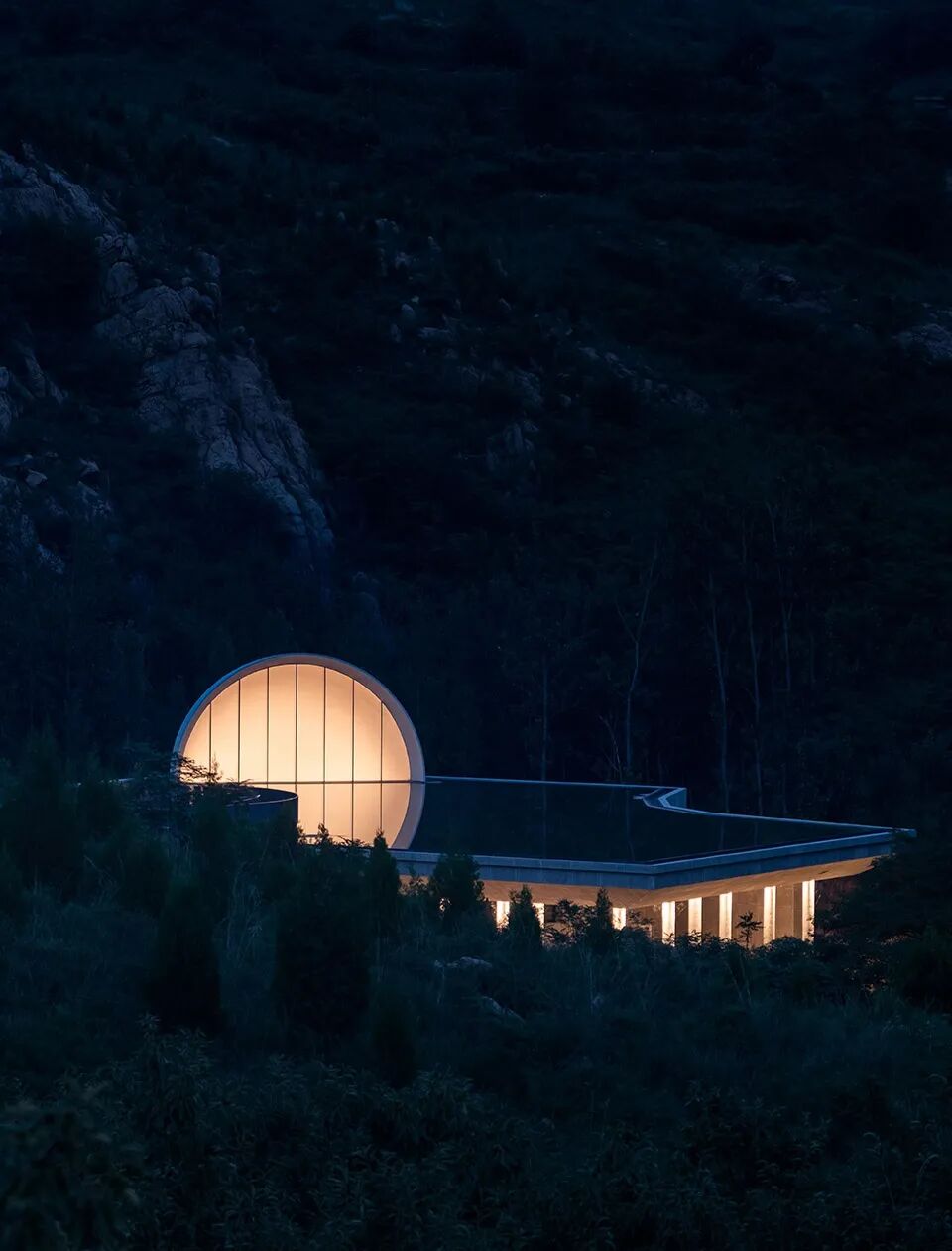袈蓝建筑构筑一种难以诉诸语言的“诗哲建筑”,将佛家的“圆融无碍、圆满无尽”、道家的“空性”、儒家的家族传承集于一体,以一轮“故乡的月”承载遮风避雨的使用价值、仪式仪典的精神价值、观游体验的美学价值、展示乡村发展的标志性价值,撬动政府、资本、媒体、大众的聚合,予建筑以“圆满”。“故乡的月”属于柯布西耶所谓的“ineffable space”,重要的,是身处其中的体验。