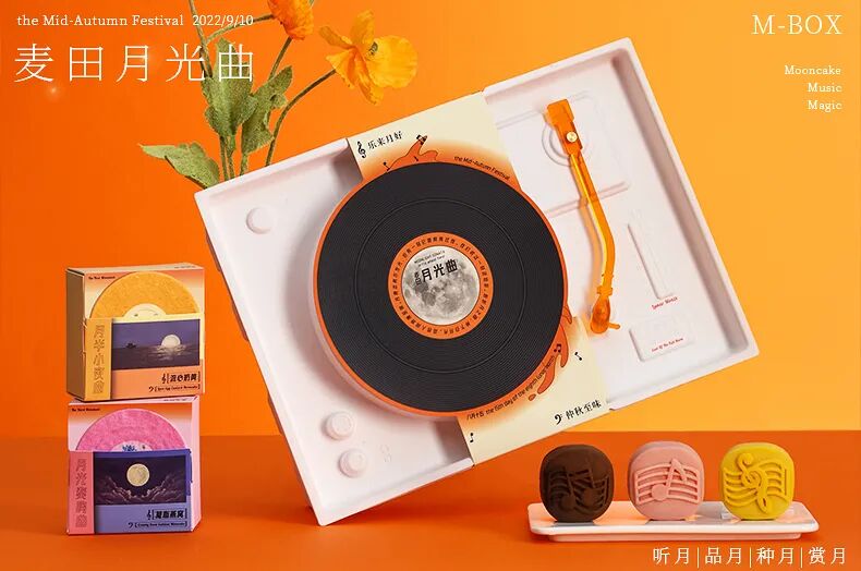 一个从设计上融合了食物与光的月饼礼盒,一个可以"听见月光"的隐藏式音乐盒,一个可以体验亲手种下"白月光"的魔法环保盒: