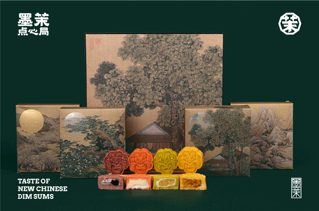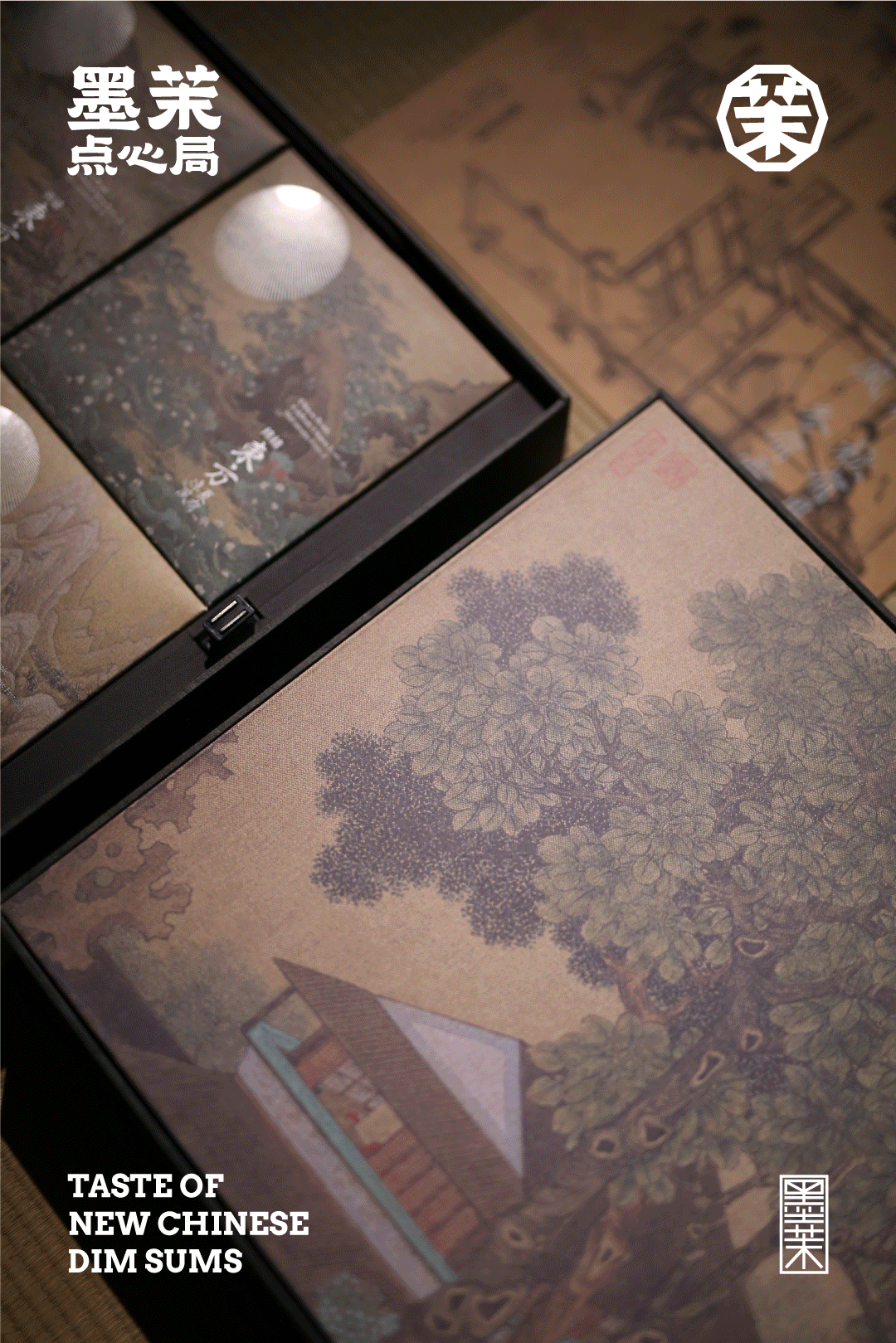 盒马烘焙与中国美术馆文创中心携手国画大师齐白石,推出“齐白石墨韵月饼”。以齐白石的四张画作为灵感,定制了四种口味,对应齐白石的《溪水小桥》、《群虾》、《芙蓉游鸭》、《咸蛋小虫》、《春山图》五幅名画。