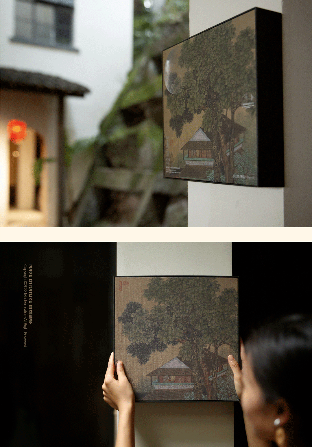 礼盒侧边还设置巧妙按钮扣开关,底部设有挂钩,吃完月饼的礼盒还能作为装饰画挂在墙上。