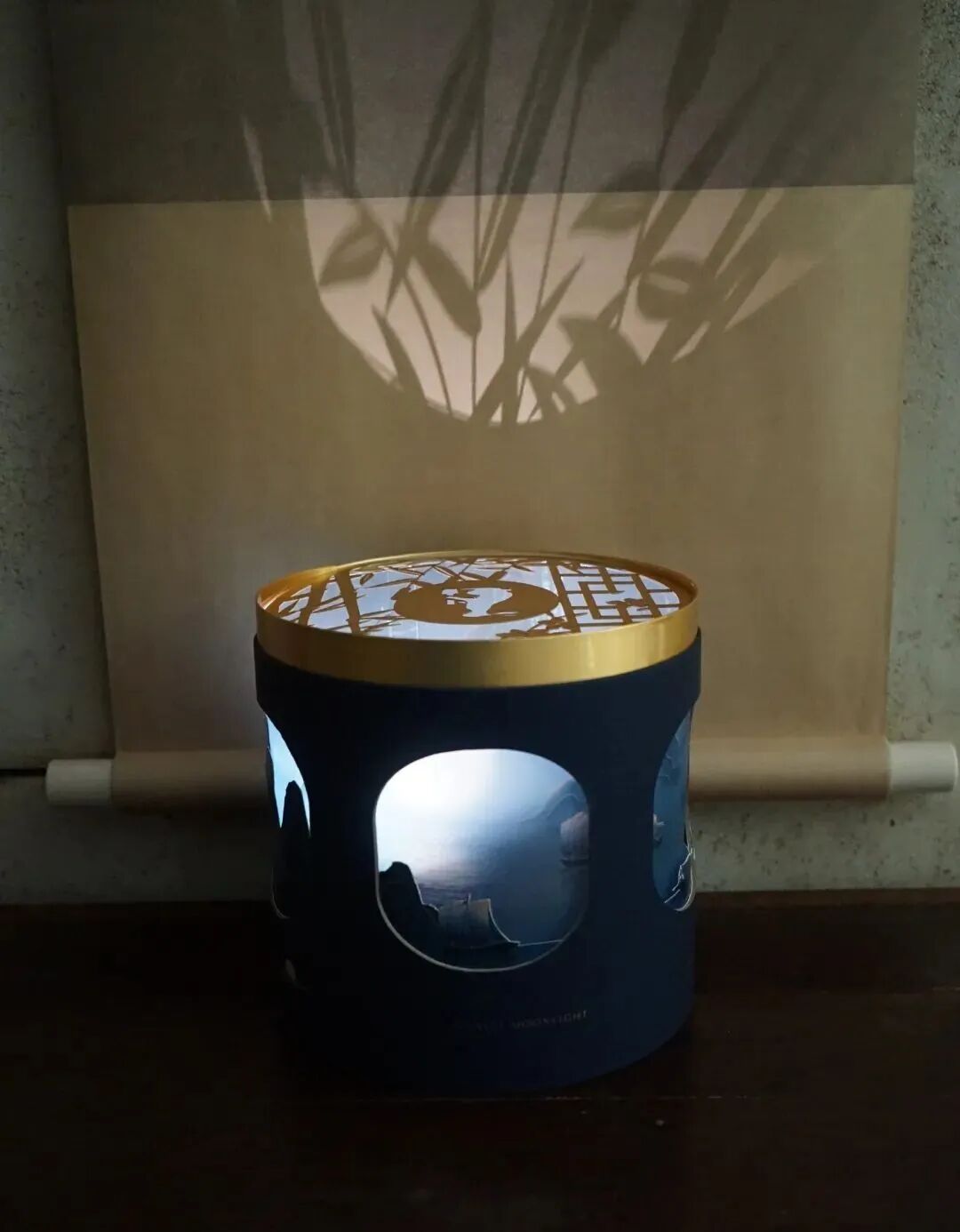 是礼盒也是一个立体装饰灯。以“明月灯火”为创意点展开,主打环保理念,抛弃传统纸质包装,选用木纤板材质,结合巧妙的榫卯结构拼装成完整外盒。