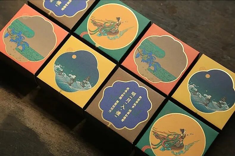 盒面采用织锦布纹肌理,复古高雅的外观,内配9只卡盒,每只图案都是好看的古画。