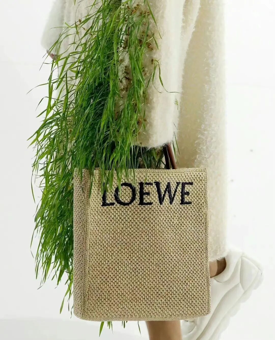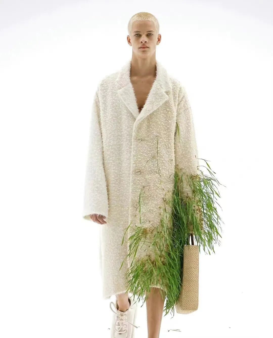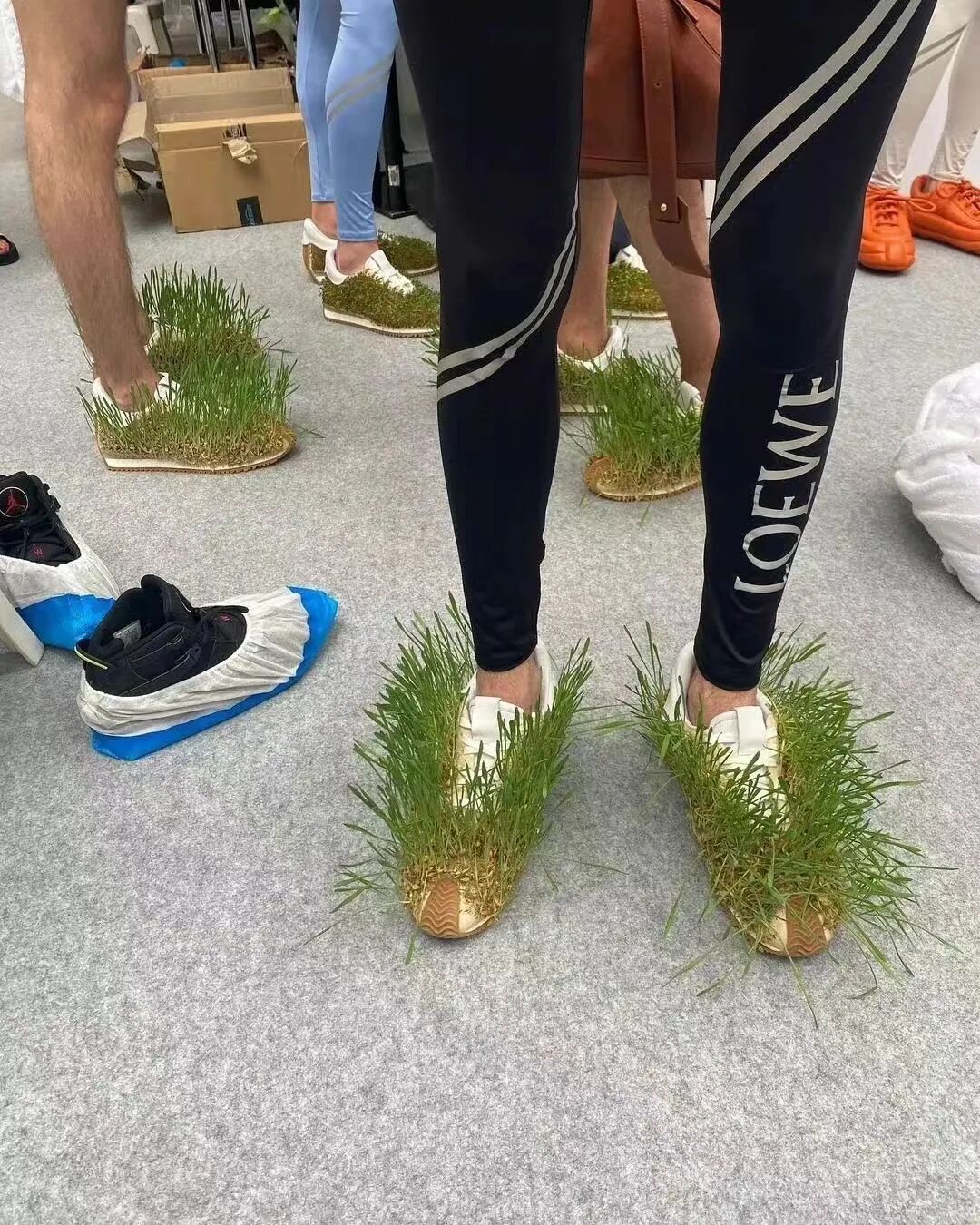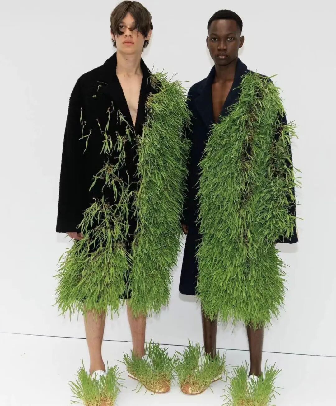 LOEWE 2023年春夏系列,为探讨人类和大自然的共生,鞋子衣服上居然长满了草,将自然与现代科技结合在一起,打造充满活力气息的服饰。