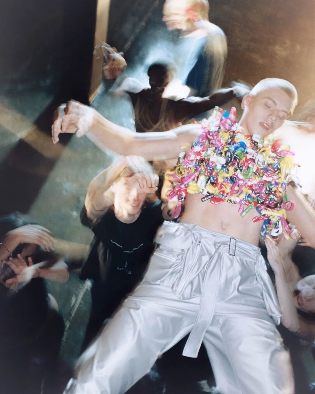 红掌裙、二维像素衫、超短娃娃裙、泄气的气球高跟鞋等单品,鲜明的色彩与夸张的廓形搭配,将天马行空的构想呈现于服装的形态之上。