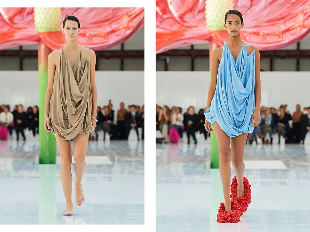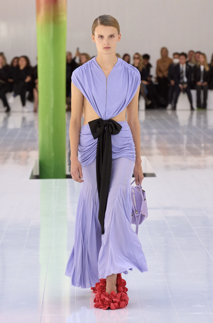 LOEWE 2023春夏系列专注于线条、色彩与廓形, 以精确的张力展现时装真实的一面,如同绮丽的红掌,生于自然而又仿佛经过人为设计。