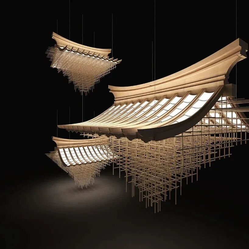斗拱现在的应用除了建筑,还可以用于室内吊顶、装饰结构、吊件装置