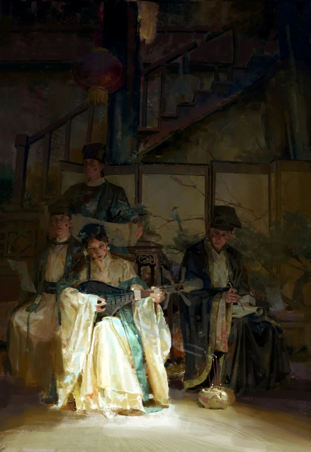 Insist:最开始是因为工作画的东西都是些美丽、帅气、华丽的人物和场景,同时也因为我是暗黑类游戏的忠实玩家,所以就开始想画一些类克苏鲁的恐怖向内容,当时还和朋友一起合作搞了克苏鲁风格的游戏demo(然而我们高估了我们的能力,最终游戏还是没能顺利面世)。之后一段时间总觉得画起来没意思,就想弄一些更能感同身受的东西,于是就想到了东方题材,再加上受到一些恐怖小说的影响于是就开始绘制起来了。