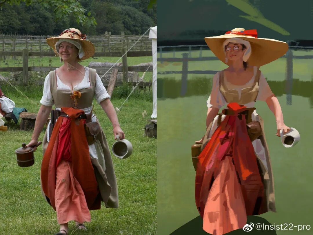 在电脑上练习速涂是为了方便试错,我一直觉得CG最大的乐趣是可以短时间尝试非常多的可能,它给了你反复试错的机会,所以我可以更大胆的修改调整尝试。包括绘制剧照也是,有关注我的小伙伴应该知道我很喜欢乱改剧照,有时候马马虎虎有时候巨难看,但是这些都会沉淀下来成为自己的东西,到后来就可以拿出来使用了。