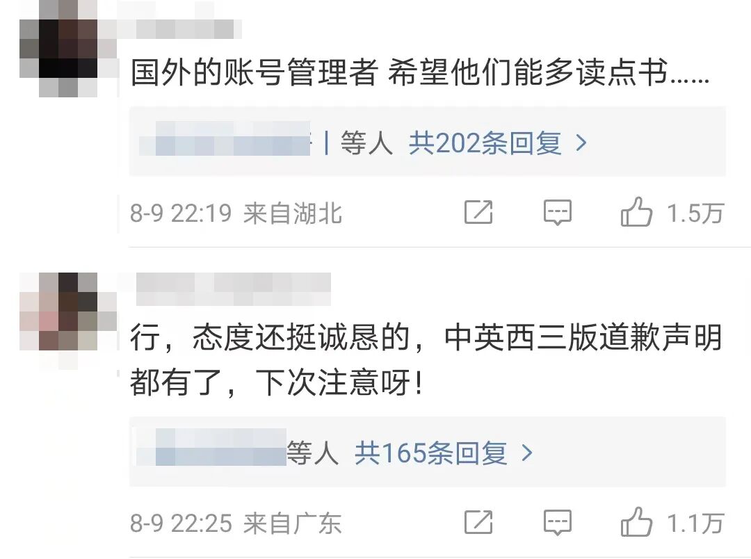 但也有网友发现了其它问题,发现在英文版的道歉声明里只说了删除推文,而并没有像中文里表示将会惩罚和终止合作的话语。
