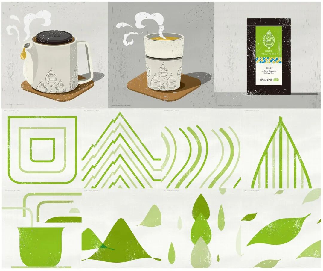 台湾有机茶品牌,早期以外销日本和中国大陆市场为主。为了让台湾人和年轻族群们都能品尝好茶,用“一脉相承,两代传情”的理念。2015年以台南为出发地经营有机茶堂。在品牌概念上,设计师以ONE2勾勒叶脉纹路,创造出“ㄧ脉相承“的含义,象征“传承“的精神。而在中文标准字设计,则使用传统老屋的屋檐作为字体的元素,并以台湾早期印花乐磁砖的花纹概念,依据不同茶品设计花纹图案。将台南老屋改造融入品牌形象识别,体现”老物“新改再造,让好茶传承,品牌更提升。