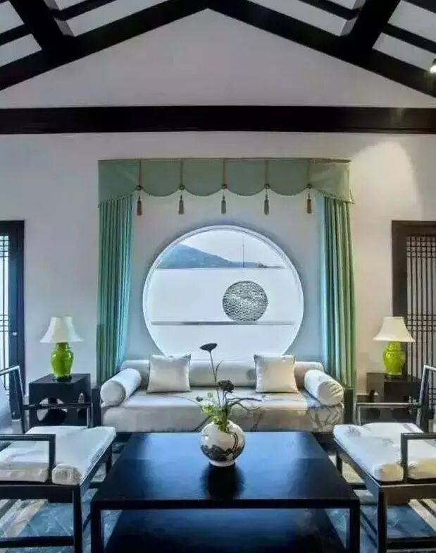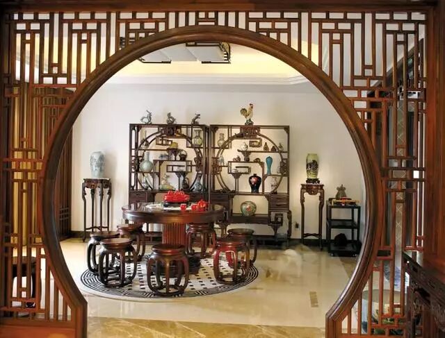 在生活中,也能见到一些中式“圆”的运用,圆拱门、圆窗、圆桌,甚至是各种圆形的小物,圆的美和韵味,都被设计师们一一运用到设计中了。