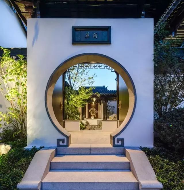 在中式建筑中,“圆”有着广泛的运用,最具代表性的便是园林中的洞门。当“圆”元素被运用于浓浓的中式风背后,体现的也是传承,对“圆融、圆满”精神原型的传承。