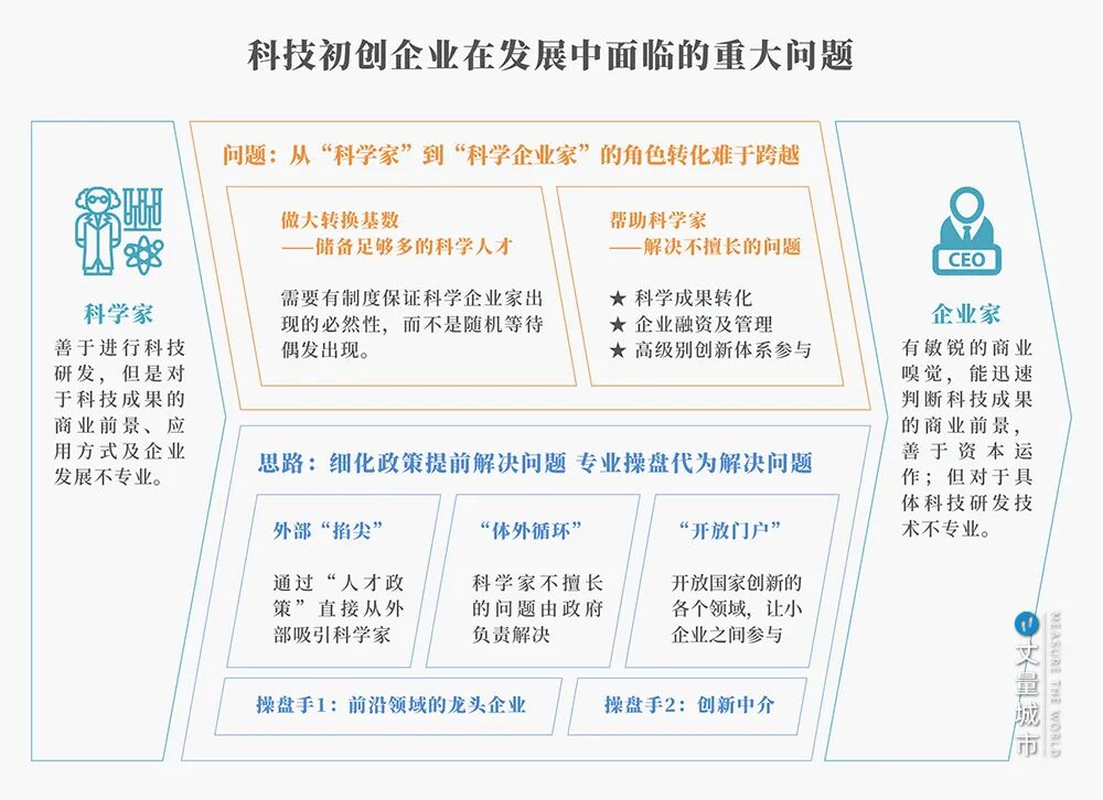 科学成果不等于商业成功,科研创新和产业转化的逻辑并不完全相通;明星科学家不等于成功企业家,两者之间天然存在着一道「鸿沟」。所以,城市政府要帮助企业完成「从科学家到企业家」的角色转换难题。这才是更精准的服务。