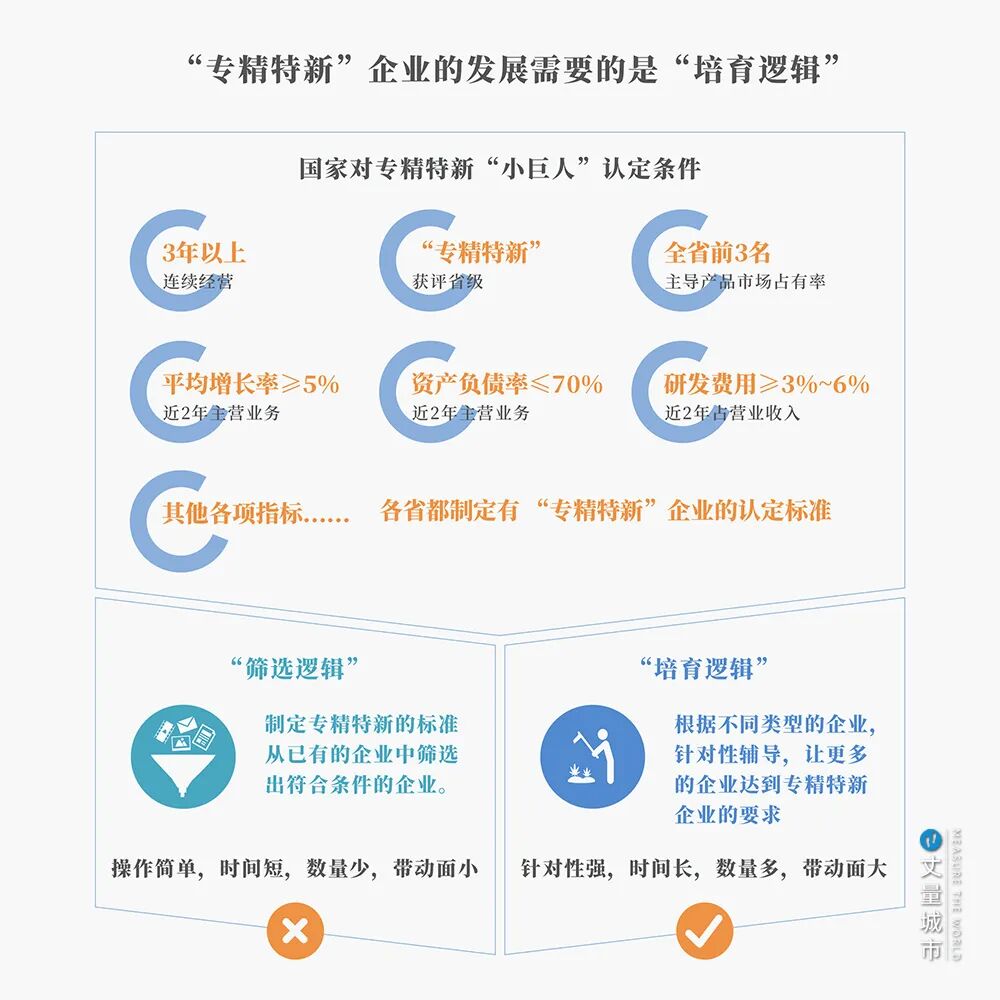 什么是「精准孵化」?就是城市政府找准不同类型企业的发展痛点,对症下药。把「痛点」解决了,原本不够专精特新的中小企业才有可能达到标准;原本已经不错的专精特新企业才有可能做得更好。