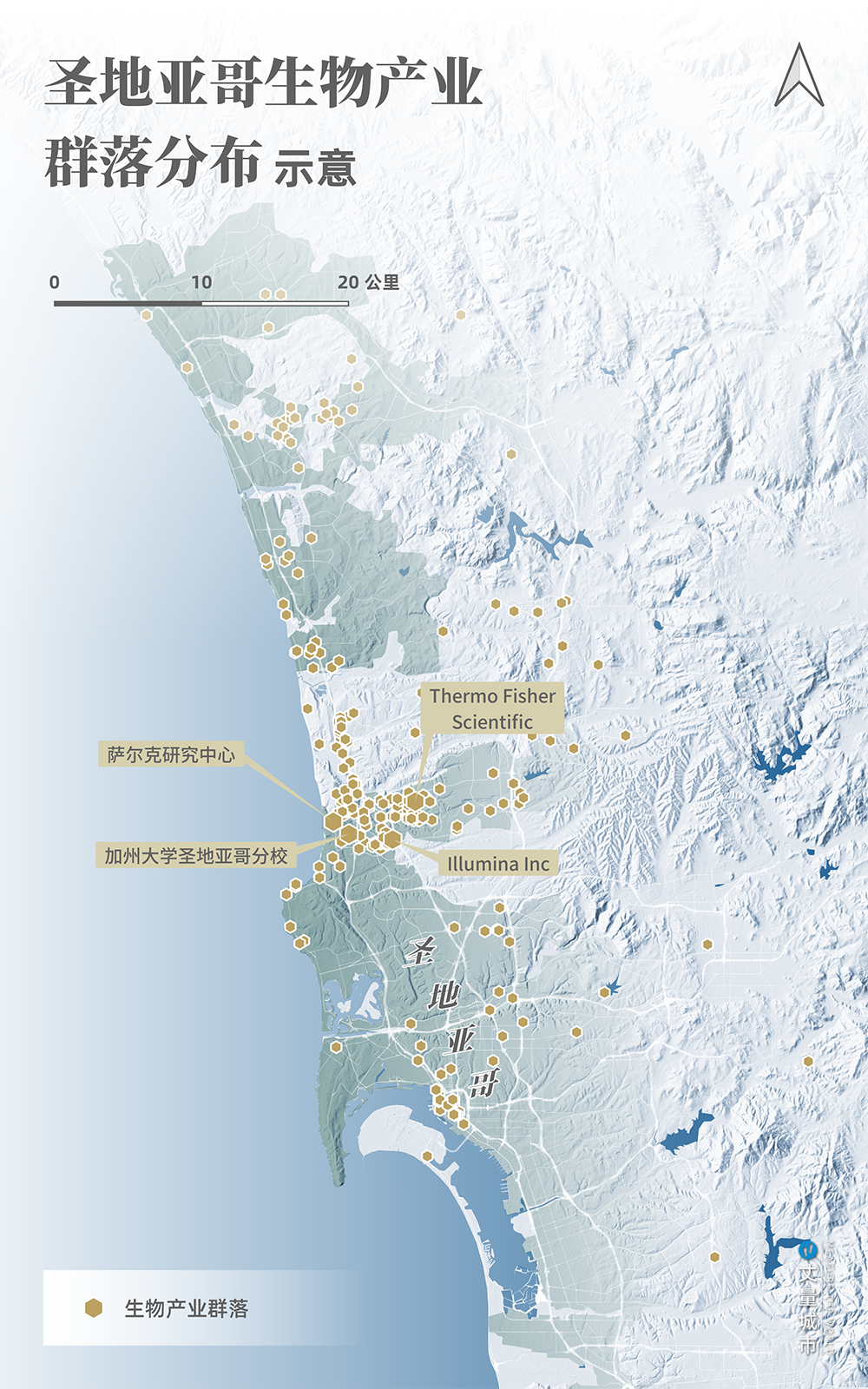 在《科学城:修仙圣殿or 烟火人间》一文中,详细介绍了美国加州圣地亚哥生命科学产业发展的起源——萨尔克研究中心和加州大学圣地亚哥分校(UCSD)。
