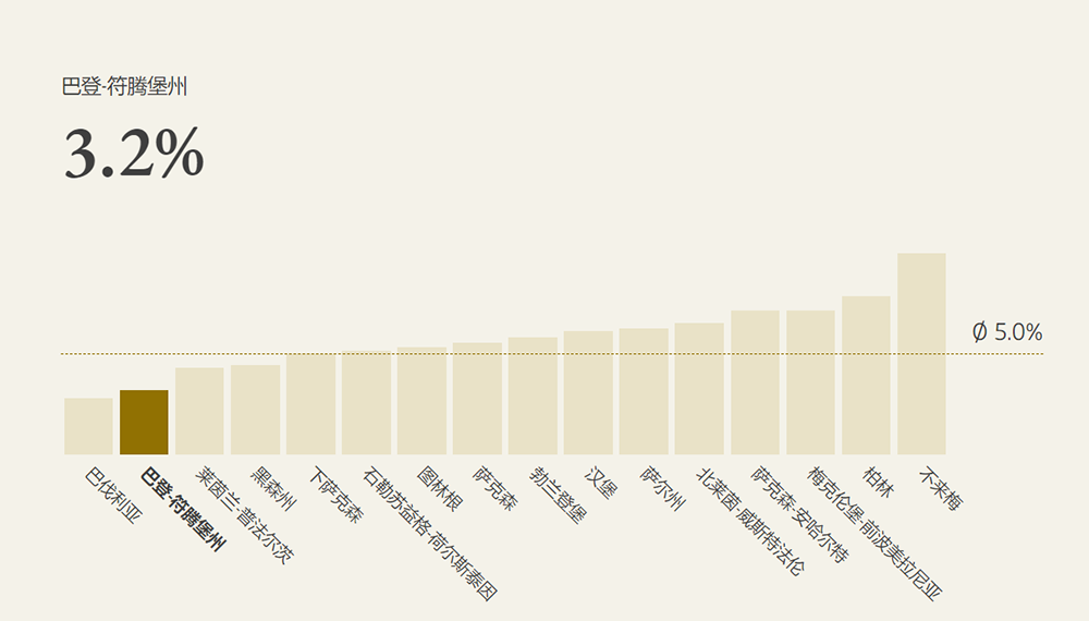 ▼ 人才培训、小企业咨询服务等措施,使得巴符州一直保持德国境内较低的失业率(来源:德国联邦就业局)