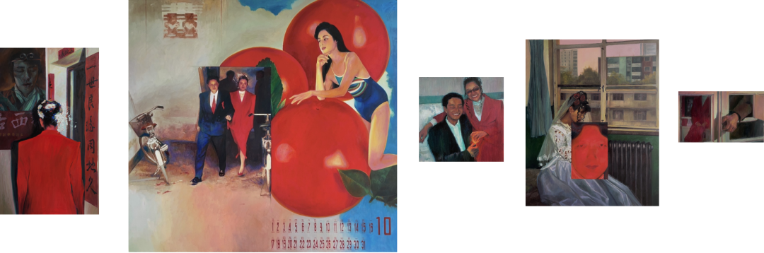 婚礼是一个婚姻与家庭的开端,我以家中父辈婚礼的老照片作为我展开此次创作的基础素材,老照片中的视觉记忆唤起了我的情感共鸣,是我创作成型的入口。红色是热烈的颜色,在我的画中有着多种的意味。多幅以红为主的画面组成一个系列作品,以强烈的叙事性因素从婚姻的角度中诉说女性的真实心理困境。