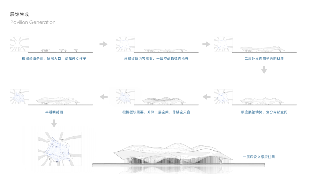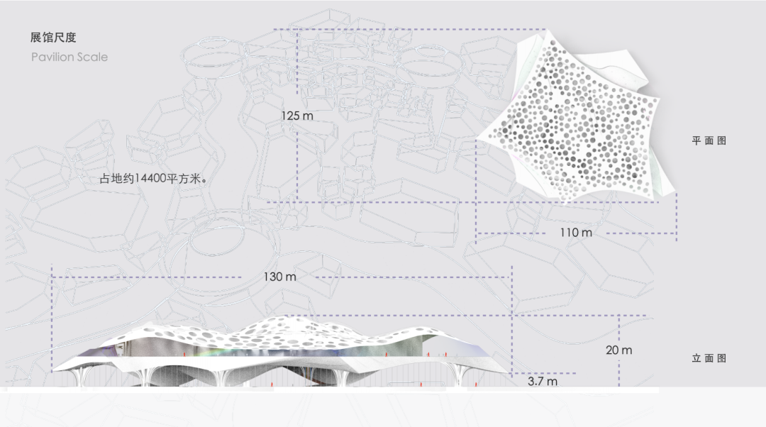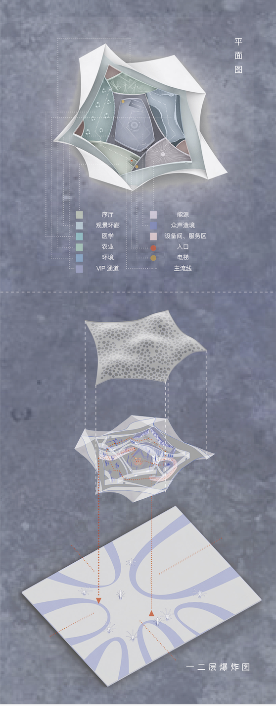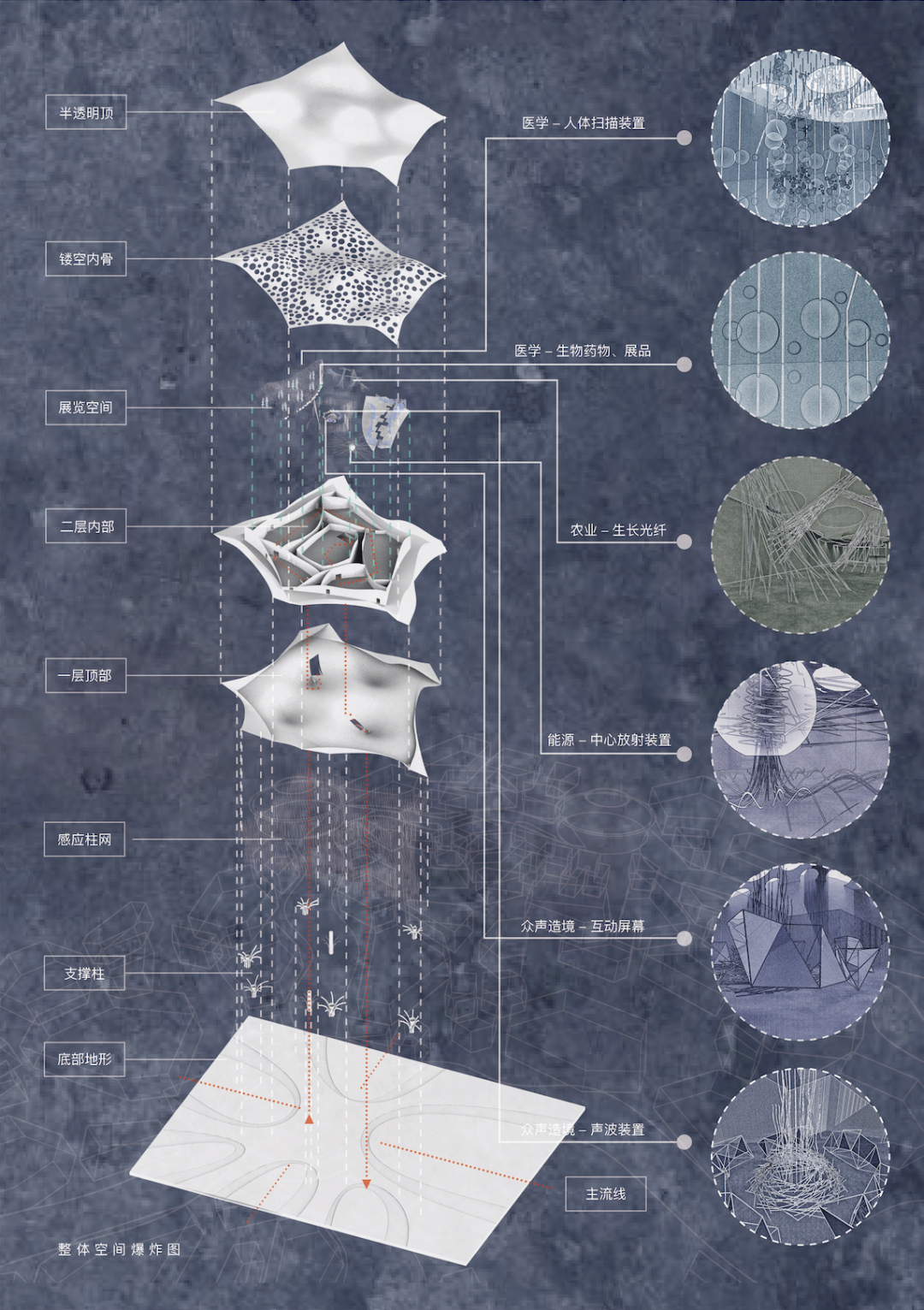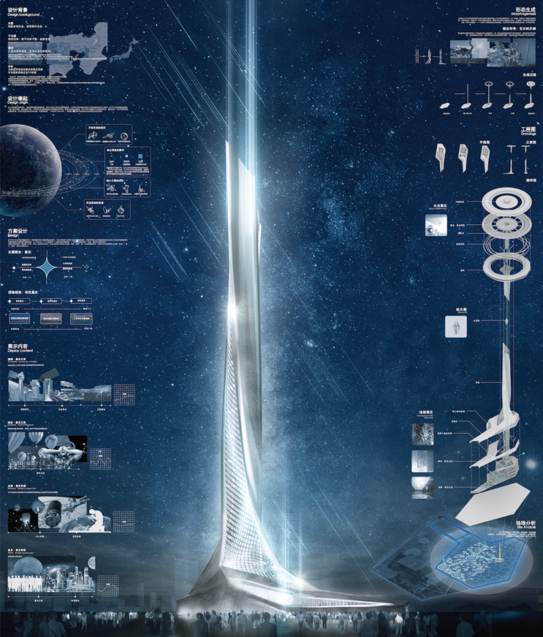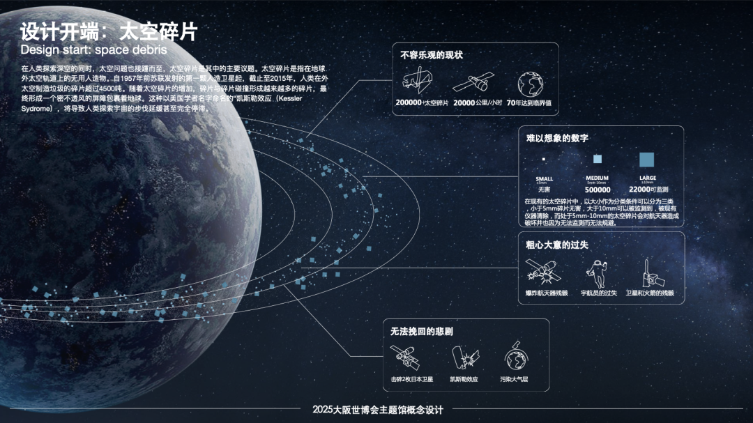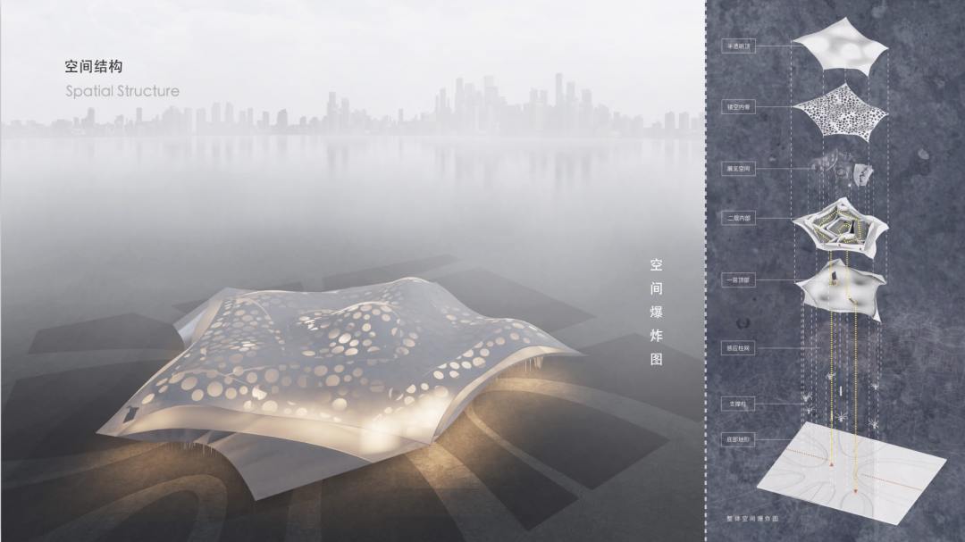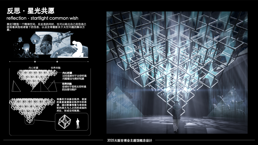 在世博会的大背景下,基于可持续发展这一议题,将目光聚焦于太空领域建造一个永久性的纪念建筑。通过寻找星光作为展览的主线让观者依次经历“看见星光-看不见星光-再见星光”的过程,以此了解太空环境,唤醒保护意识。