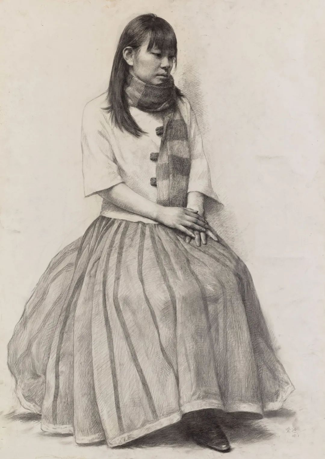 徐紫迪 《女青年全身像》 77×107cm 纸本铅笔 2008年 指导教师:王少伦