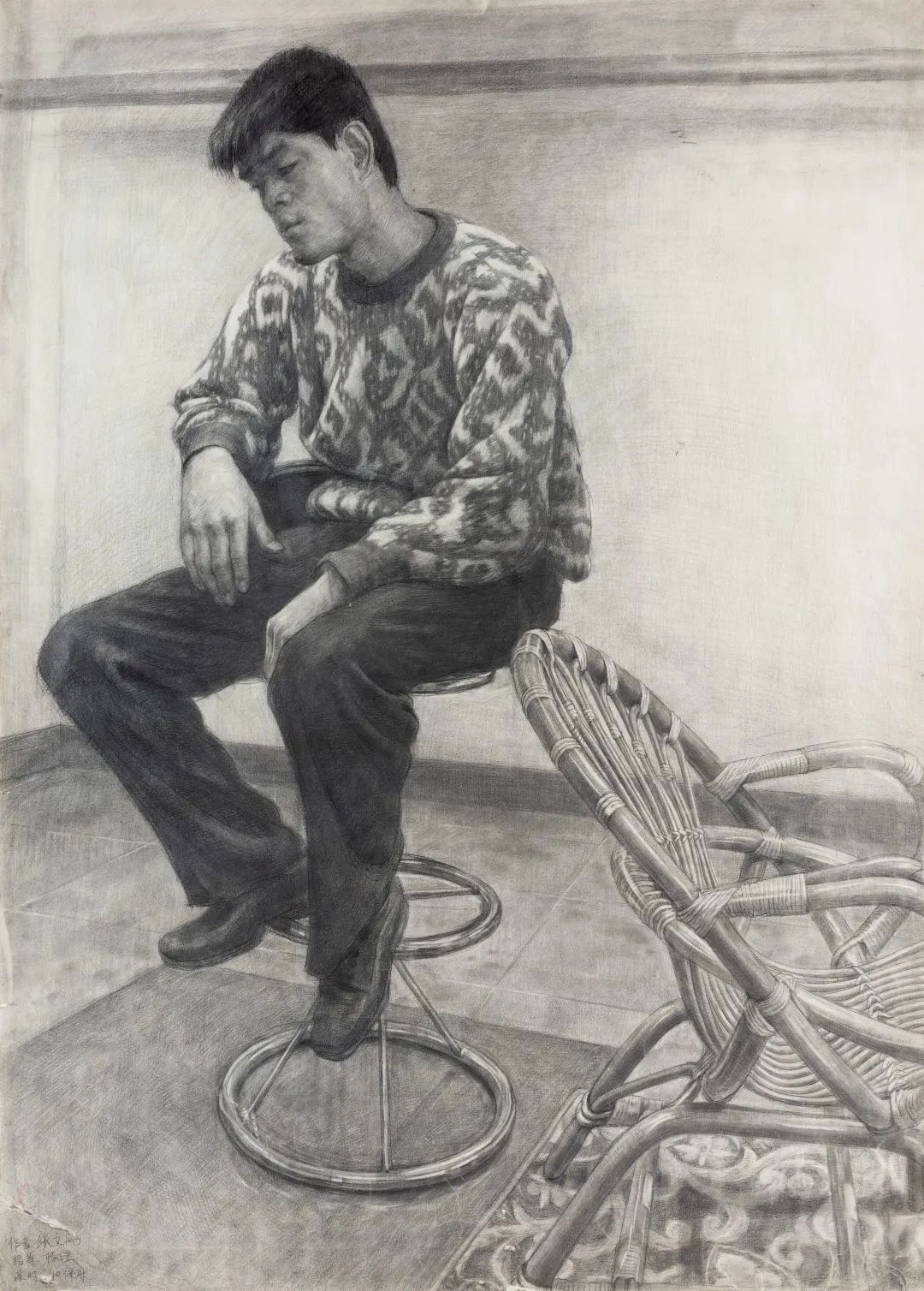 张文凤 《坐着的男子》 107×77cm 纸本铅笔 2002年 指导教师:杨澄
